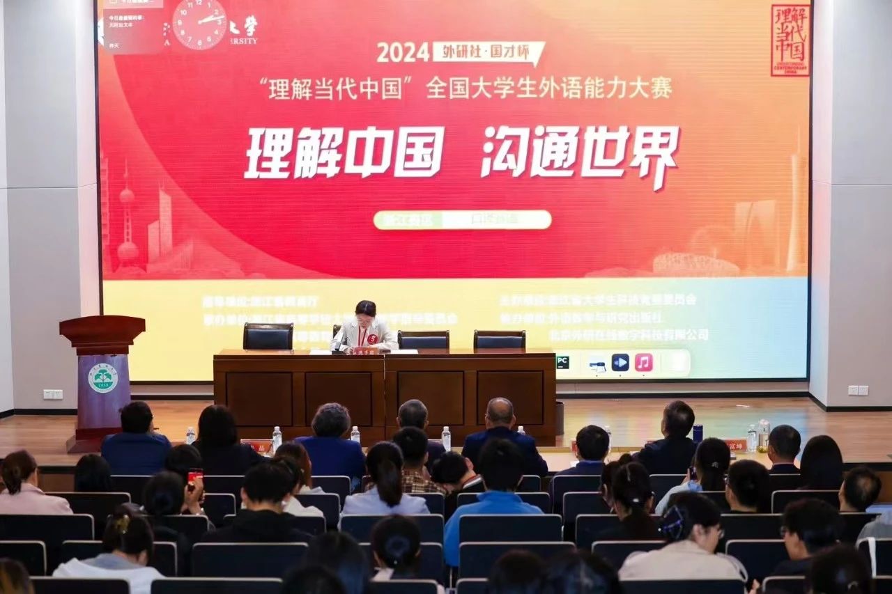 近日,2024“外研社·国才杯”全国大学生外语能力大赛浙江省决赛结果揭晓。在“理解当代中国”浙江省大学生外语能力大赛英语口译赛道中,在骆玉峰老师带领下,英语专业金栩慧、翻译专业蔡清怡双双荣获金奖成功晋级国赛。