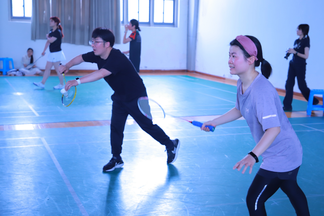在正式赛环节中,由党委书记袁智杰领衔的教师队与学生队依次展开女子双打、男子双打、混合双打以及自由组合的四轮对决。赛场上选手们相互鼓励,目光坚毅,羽毛球划破空气的锐响与球鞋摩擦地板的声响交织成激昂的战歌。赛场下加油声、呐喊声,此起彼伏。“不放弃每一个球”,这是每一位选手心中掷地有声的誓言。