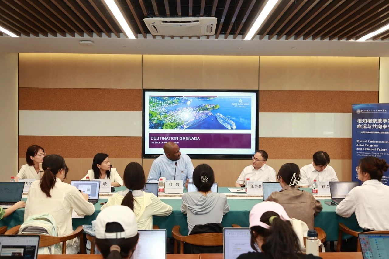 在宣讲中,马岩大使还生动介绍了格林纳达的历史文化、生态环境、社会制度与风土人情,并分享了格林纳达与中国在教育、医疗、基础设施、文化交流等多个领域的合作成果。他表示,加中虽远隔重洋,但友谊绵长深厚:“从格林纳达街头美食到中国端午香包,从传统节日到当代音乐艺术,文明之间始终存在着真实而温暖的共鸣。”他讲到:“We continue to work hard to build a sustainable system, a sustainable path for those behind us”,表达了对中拉合作面向未来、面向青年、面向可持续发展的美好期待。