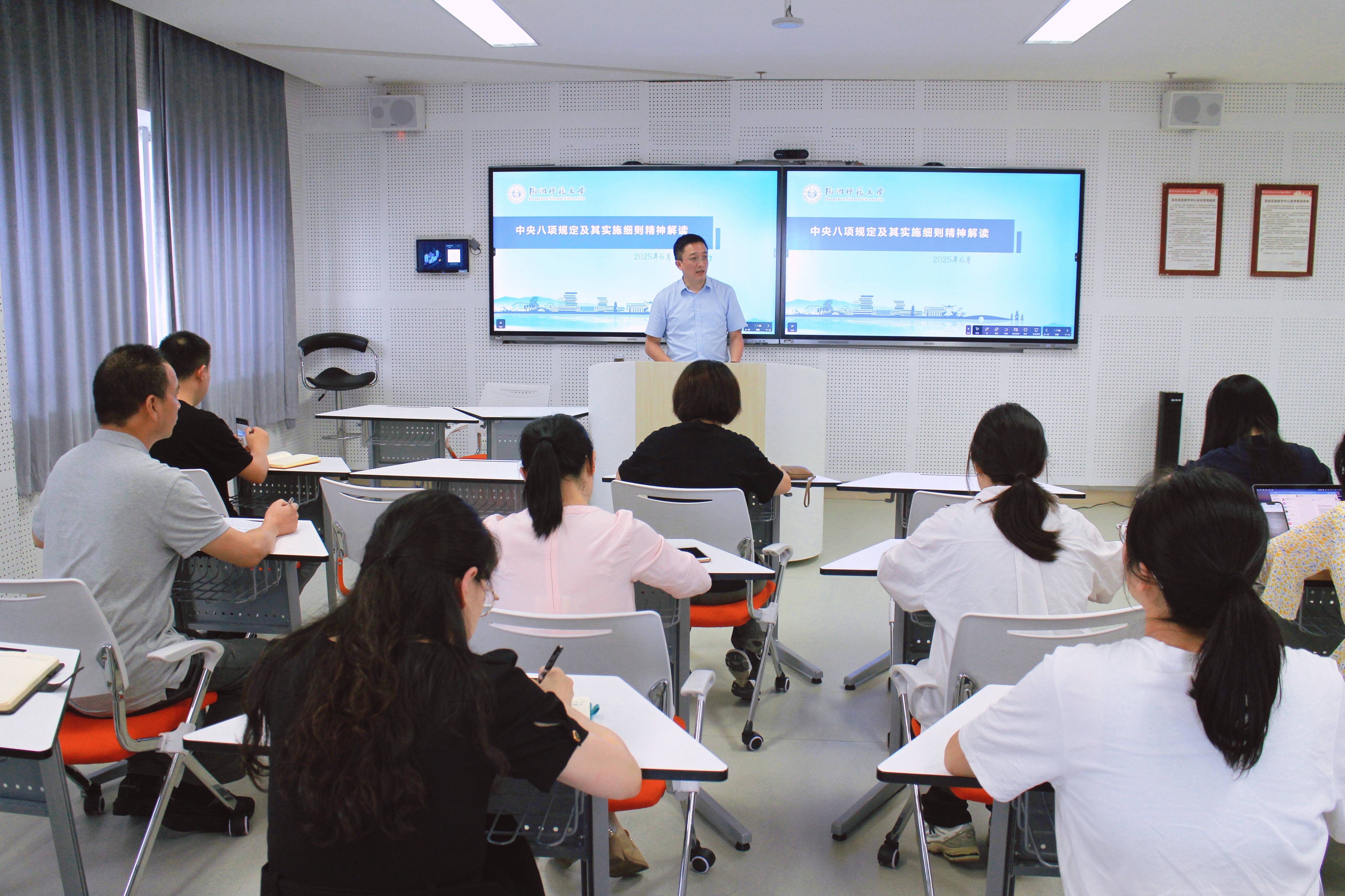 袁智杰书记详细解读了中央八项规定及其实施细则出台背景、形成过程、主要内容和精神实质。他指出,我们要深刻领会学习贯彻中央八项规定及其实施细则精神的核心要义、实践要求,准确把握其时代内涵;充分认识到一体推进党风政风、师德师风、校风院风、教风学风建设,是全面改善学校和学院政治生态和育人环境的重要政治任务,是落实立德树人根本任务的应有之义;同时也要清醒认识到高校党的作风建设面临的严峻形势。