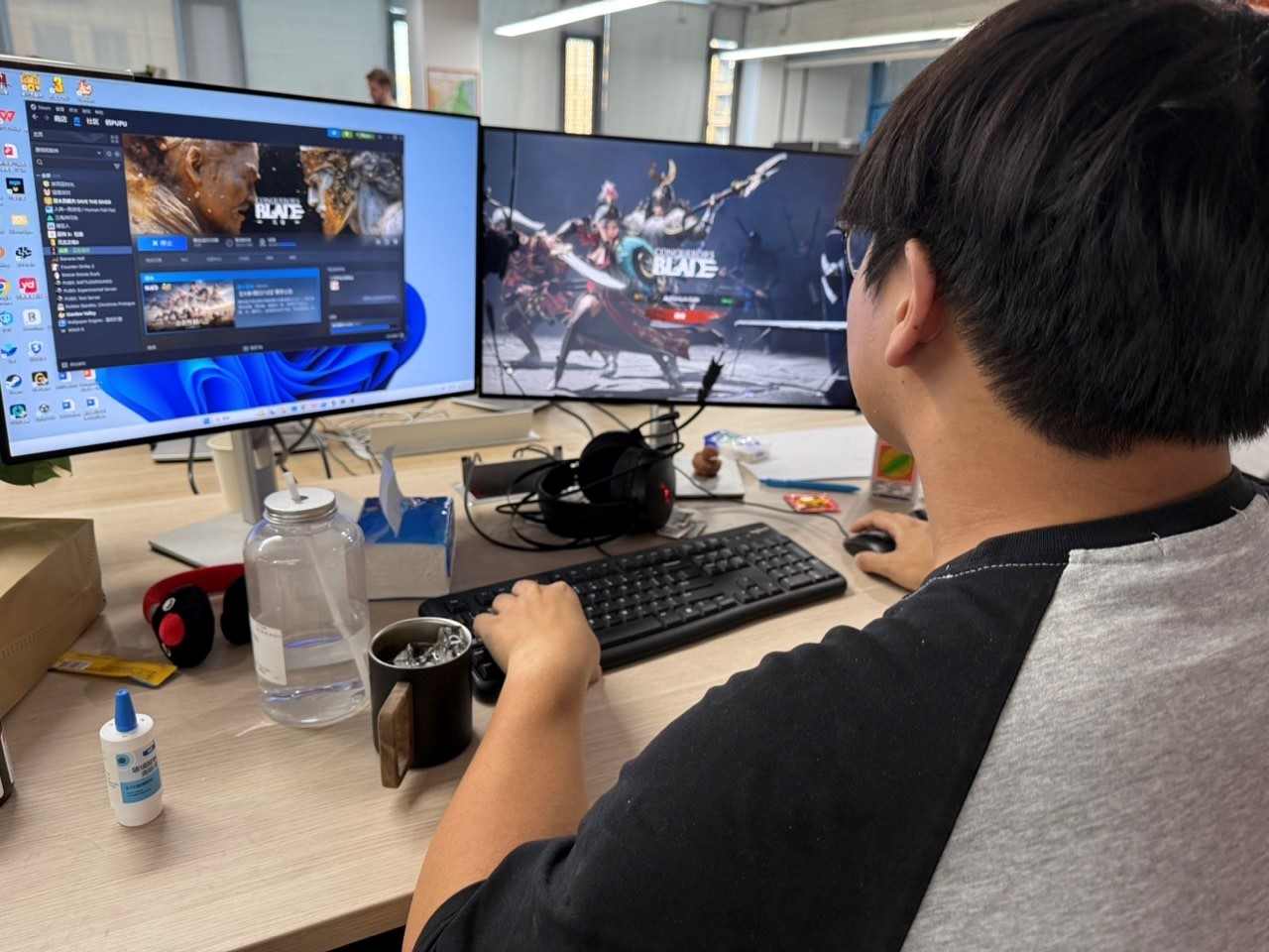 近日,永乐视频 翻译硕士导师高乾实地走访了位于杭州西湖区的不鸣科技公司,探望在此进行游戏本地化实习的23级翻译硕士研究生韩彬。不鸣科技是跨文明古代战争网游《战意》的开放商,该游戏已在Steam平台进行全球多语言发行。