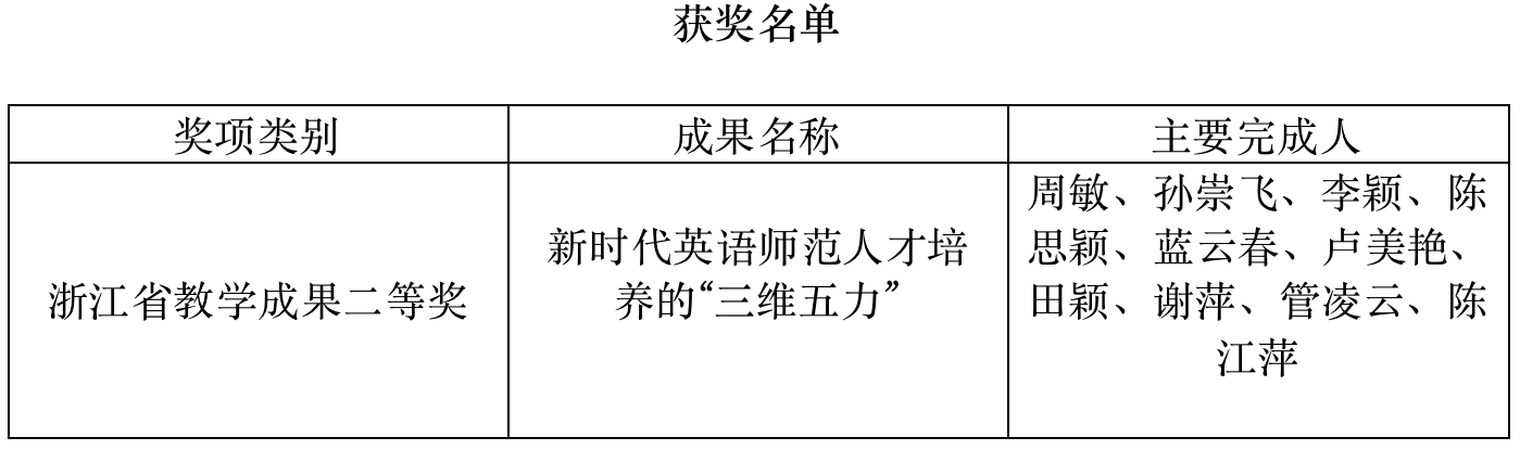 荣获浙江省教学成果二等奖