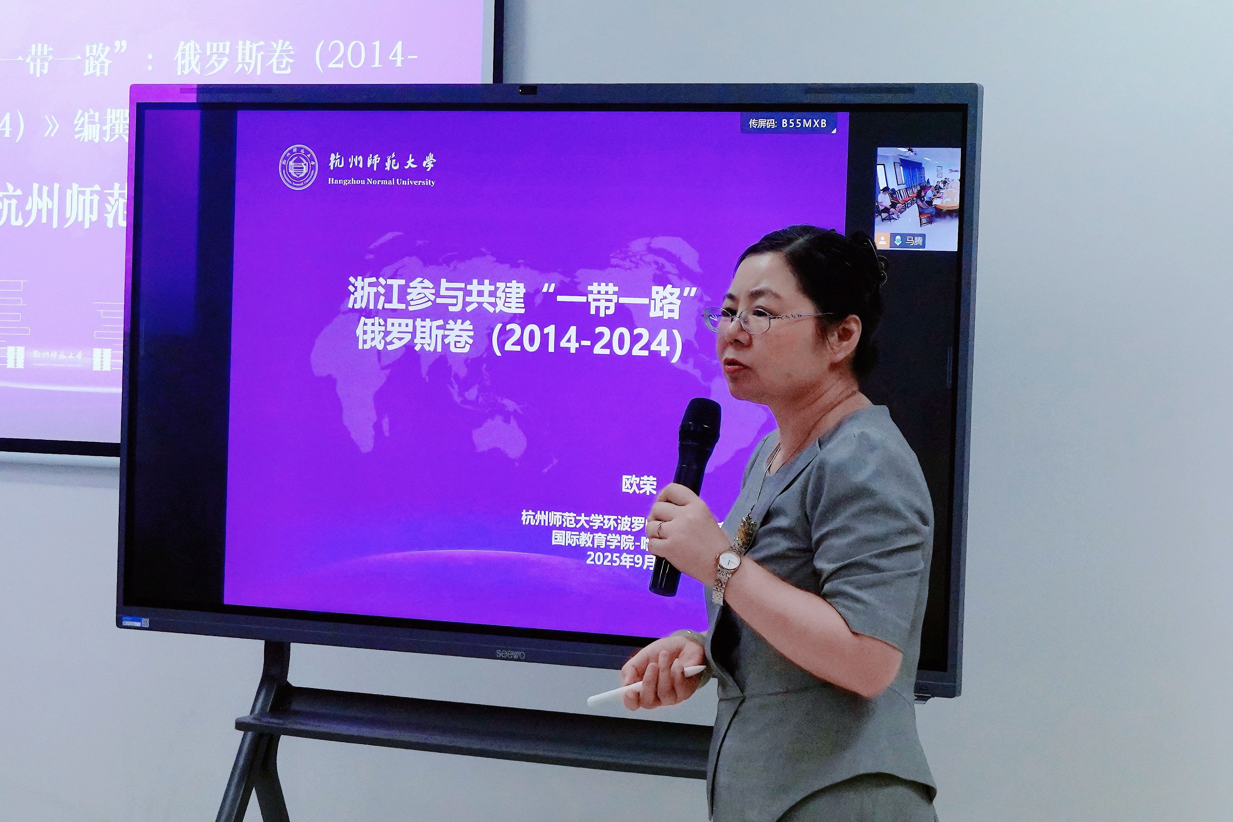 座谈会现场随后,国际教育学院-哈尔科夫学院党总支书记徐凌芸主持了新书编纂汇报环节。欧荣教授就《浙江省参与共建 “一带一路”:俄罗斯卷(2014-2024)》的编撰工作进展作详细汇报;环波中心研究员马腾副教授介绍了《波罗的海三国地理》的编写思路与整体框架设计。两本新著的有序推进,将进一步充实环波罗的海国家基础研究、拓展相关研究维度。会上,来自各单位的专家学者围绕两部书稿的学术价值、研究路径与应用前景展开热烈研讨,并积极建言献策,既为著作完善提供了多元视角,也充分彰显出与会人员对区域国别研究的高度重视,以及共同推动该领域研究向纵深发展的共同愿景。