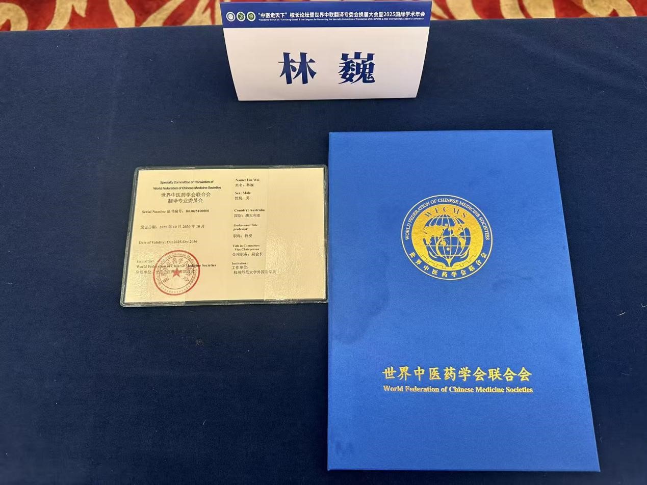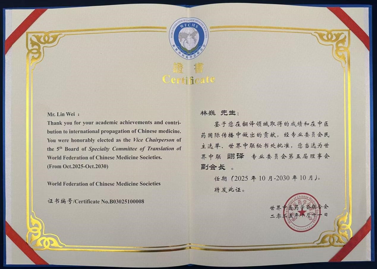 - 林巍教授在世界中医药学会联合会翻译专业委员会