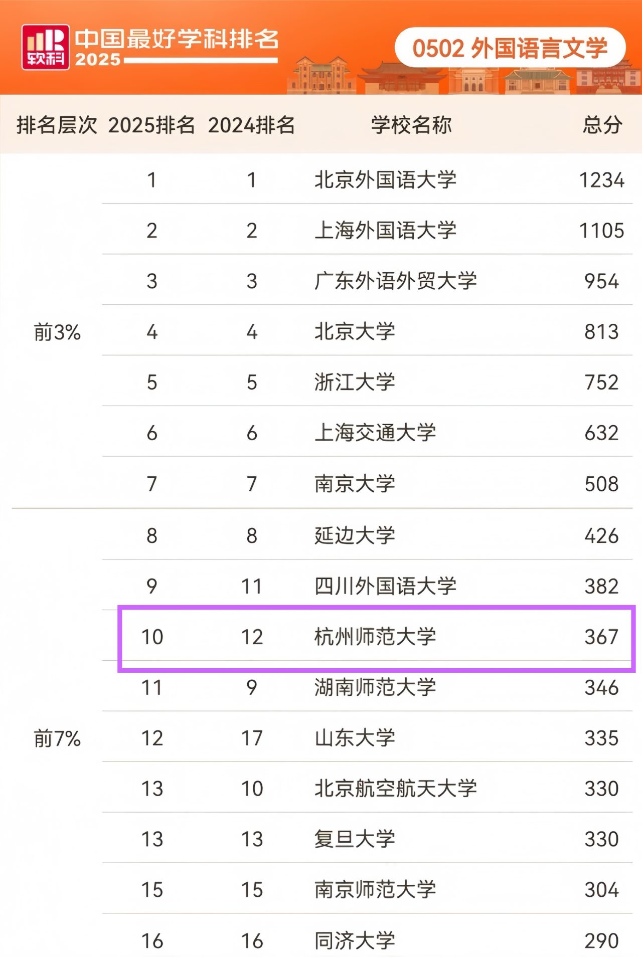 这些高水平的师资队伍和科研成果为永乐视频 外国语言文学学科的软科排名奠定了坚实的基础,也扩大了永乐视频 在全国的知名度和美誉度。接下来,永乐视频 将向国内一流外语学科看齐,落实立德树人根本任务,服务国家战略和改革开放大局,为浙江及杭州的国际化建设提供智力支撑。