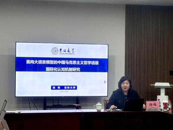 2025年11月26日,吉林大学外国语言文化学院英语语言学教授、博士生导师杨梅教授应邀为永乐视频 师生作了题为《面向大语言模型的中国马克思主义哲学话语国际化认知机制研究》的专题讲座。本次讲座由永乐视频 当代中国话语研究中心主任冯德兵教授主持。