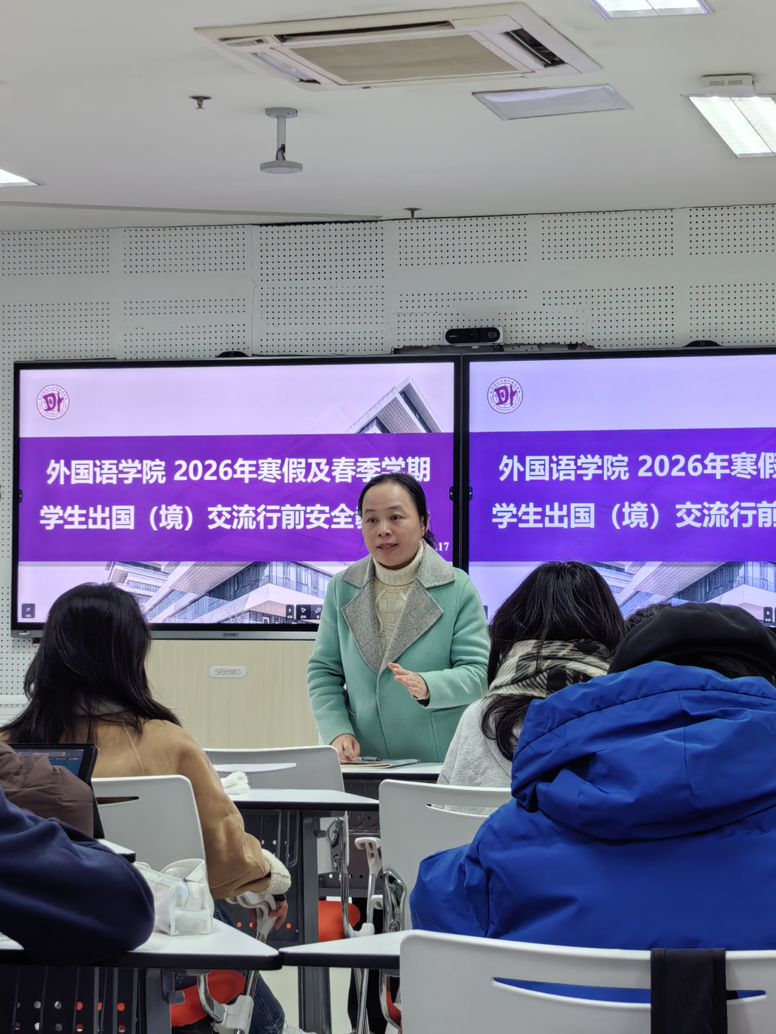 蓝老师围绕“留学生海外安全与文化适应”主题,结合实例,系统讲解了人身安全、财产安全、金融诈骗防范等关键注意事项,提醒同学们在海外始终保持警惕,掌握必要的应急处理方式。在文化适应方面,蓝老师鼓励同学们积极融入当地环境,主动担当中国文化使者的角色,通过日常言行展现中国青年良好形象,促进跨文化理解与友好交流。针对敏感话题等情景,蓝老师提供了沟通策略建议,引导学生理性应对、稳妥处理,维护个人安全与国家形象。蓝老师还特别强调了团队联络机制的重要性,建议同学们建立互助群组,保持与家人、学校的定期联系,构建有效的支持网络。最后蓝老师强调严禁从事任何危害国家安全、损害国家利益的活动,坚决抵制任何形式的分裂主义言行,严格遵守当地法律法规及学校规章制度,绝不触碰法律纪律禁区;底线要坚守,包括时刻牢记个人安全第一,遵守当地社会风俗习惯,保持良好个人形象,坚决不参与赌博、吸毒、非法集会等活动,遇到问题及时向使领馆或学校报告。