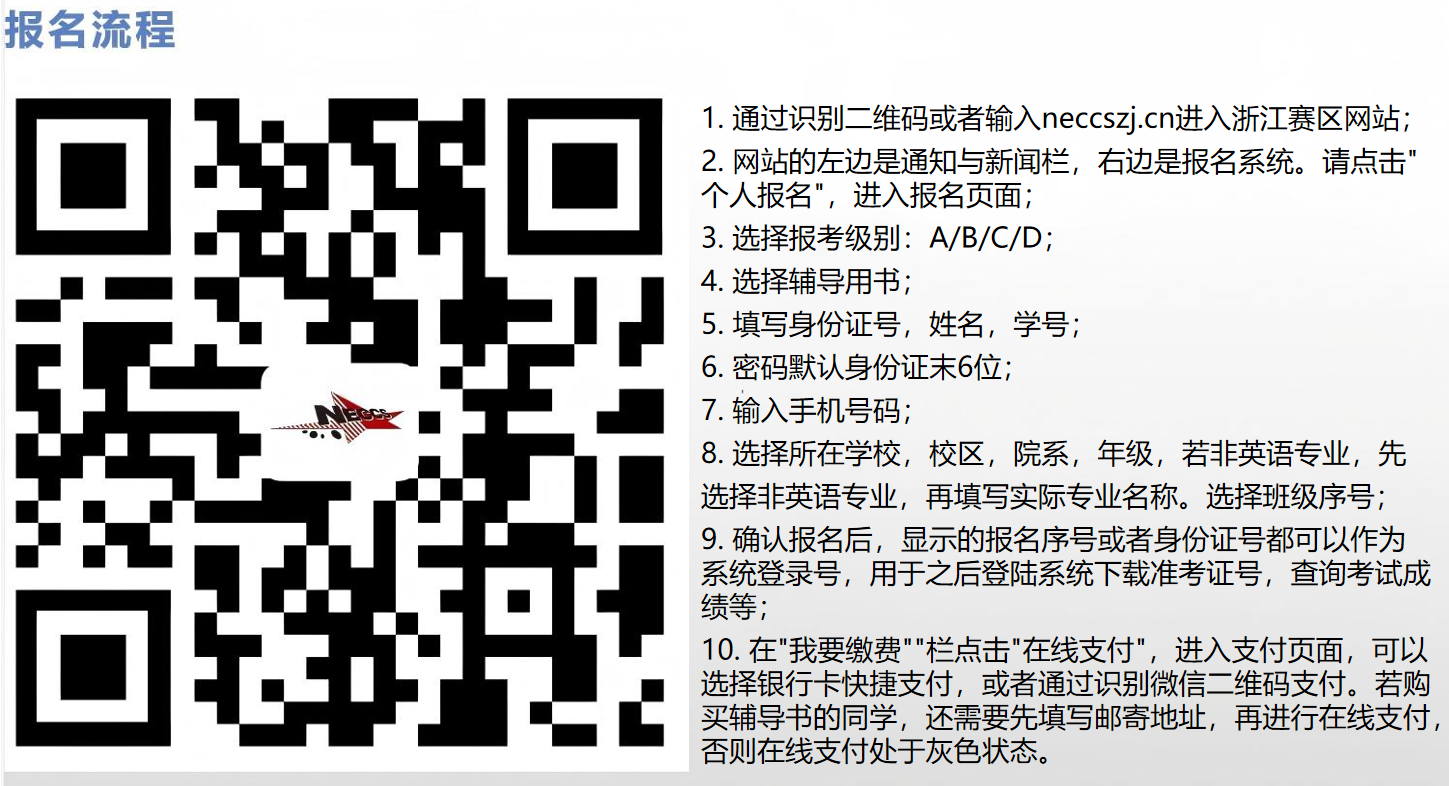 全国大学生英语竞赛(NECCS)浙江赛区报名网站www.neccszj.cn。
